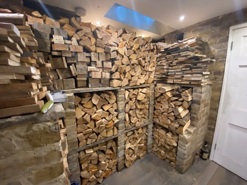 26th June 2023 Whilst we’re on the subject of wooden pallets, despite the precautions you need to take, my goodness you can end up with a great store of kindling and early-stage firewood. Look at this photo of some wood storage In my cellar. Almost everything on the top shelf is pallet wood!